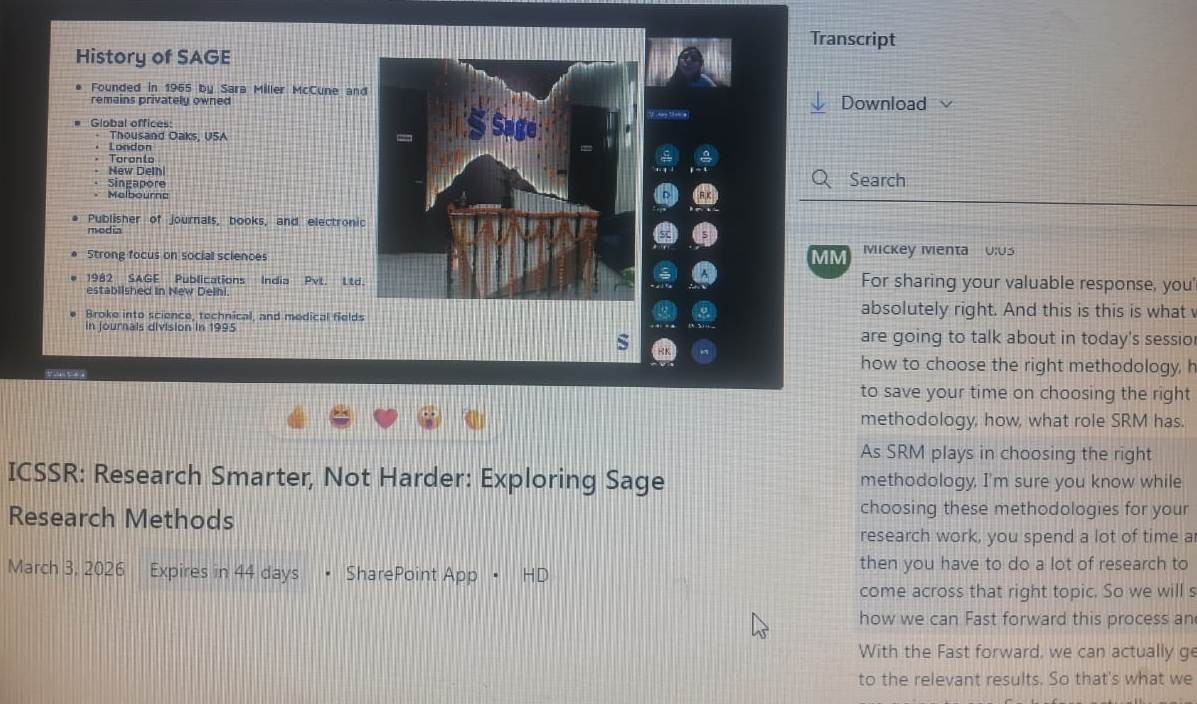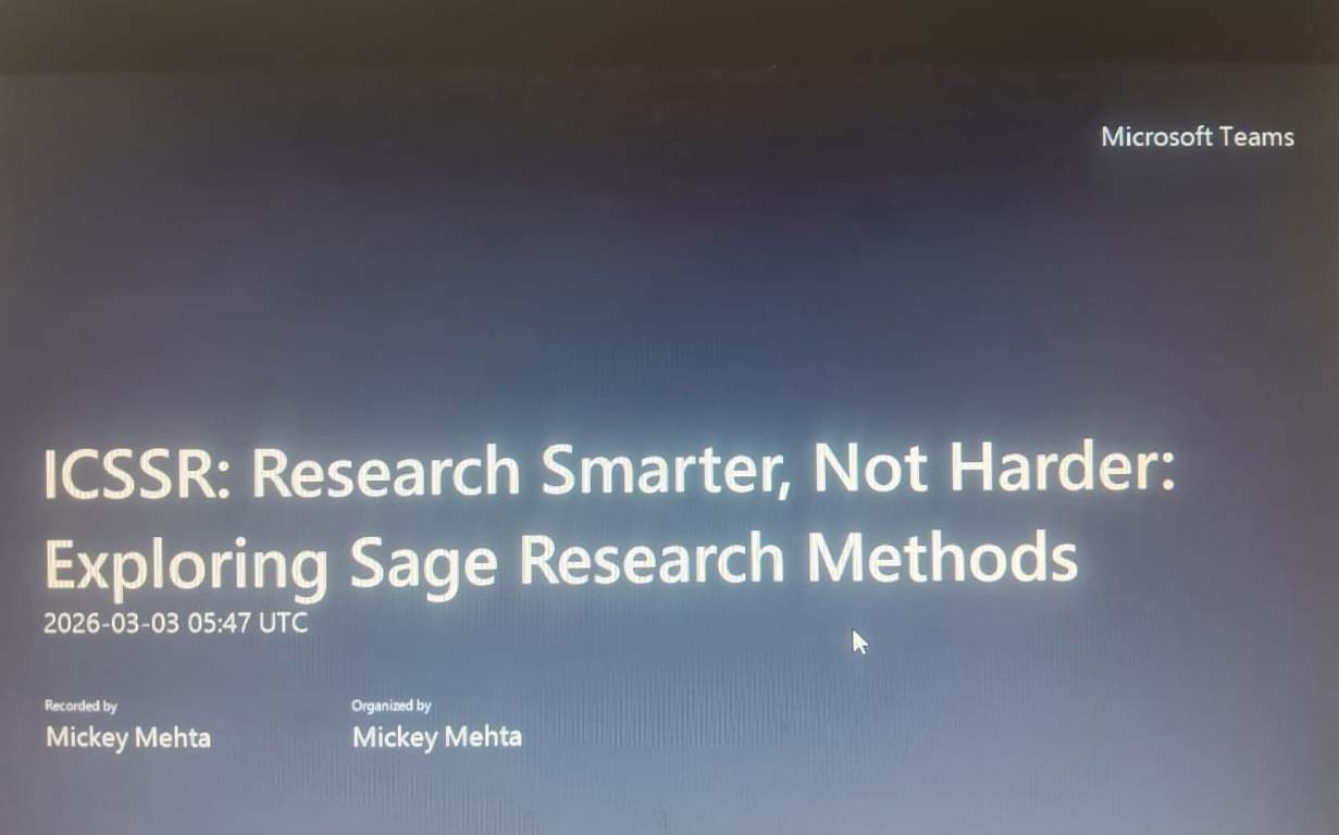 ICSSR : Research Smarter, not Harder : Exploring Sage Research Methods Virtual Learning Session : 3rd March 2026, Time 11.00-1200 P.M