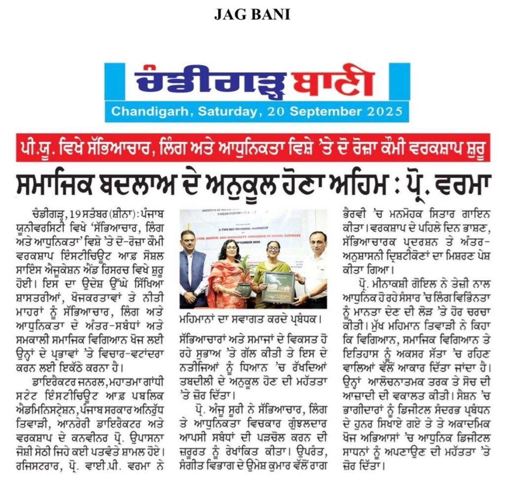 The Harappa or Indus–Saraswati Civilization is not only a legacy of the past but also a living tradition that provides guidance for the future. We must make efforts to bring tradition and modernity together because this is the only way through which we can connect the youth with our glorious history. Today’s youth need to step out of their comfort zone and connect with their roots. These words were expressed by the Vice-Chancellor of Panjab University, Prof. Renu Vig, at the two-day National Seminar on the theme “Harappa or Indus–Saraswati Civilization: Emerging Paradigms of Nomenclature.”